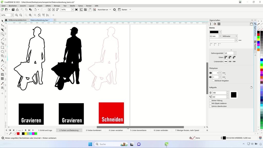 Farben für den Laservorgang in CorelDRAW