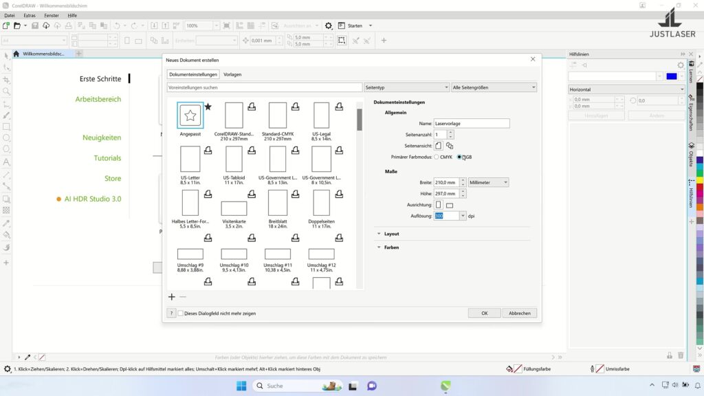 Neues Dokument erstellen in CorelDRAW